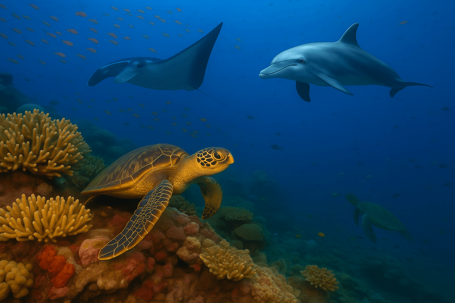 Koraly, ktoré sa rozprestierajú pozdĺž pobreží a okolo ostrovov, sú skutočnými podmorskými architektmi. Vytvárajú celé „mestá života“, kde sa medzi farebnými útesmi pohybujú drobné rybky, korytnačky, morské koníky aj majestátne manty. Každý koralový útes je svojím spôsobom miniatúrnym svetom – dýcha, rastie, a reaguje na zmeny teploty i čistoty vody.
