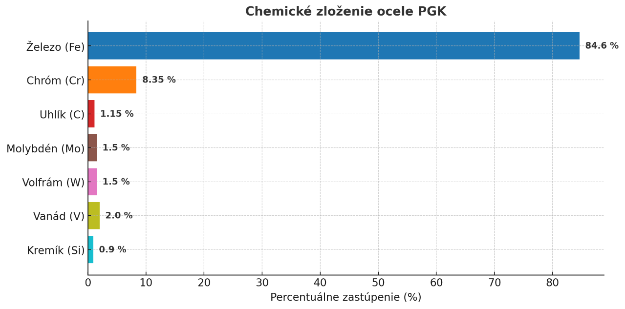 Chemické zloženie ocele PGK patrí medzi hlavné piliere jej výnimočného výkonu. Obsah uhlíka na úrovni 1,15 % vytvára pevný základ pre dosiahnutie extrémnej tvrdosti, zatiaľ čo prítomnosť chrómu v množstve 8,2 až 8,5 % zabezpečuje vysokú odolnosť voči opotrebovaniu. Ďalšie legujúce prvky ako molybdén 1,5 %, vanád okolo 2 % a wolfrám 1,5 % dodávajú oceli výnimočnú húževnatosť a schopnosť udržať ostrie aj pri vysokých zaťaženiach. Prísun kremíka približne 0,9 % zlepšuje štrukturálnu stabilitu a znižuje riziko vzniku trhlín počas výroby a následného spracovania.